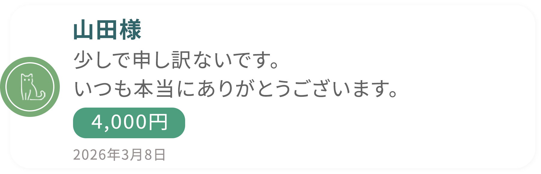 優しい一生の家族へ